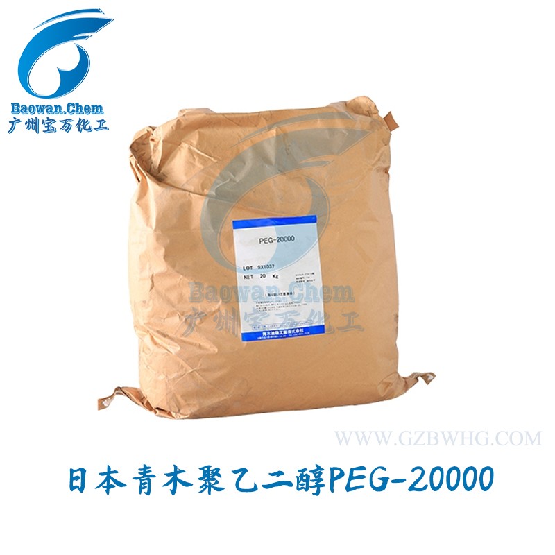 聚環(huán)氧乙烷與水的加聚物。分子量在700以下者,在20℃時為無色無臭不揮發(fā)粘稠液體,略有吸水性。分子量在700~900之間者為半固體。分子量1000及以上者為淺白色蠟狀固體或絮片狀石蠟或流動性粉末?;烊苡谒苡谠S多有機溶劑,如醇、酮、氯仿、甘油酯和芳香烴等;不溶于大多數(shù)脂肪烴類和乙醚。